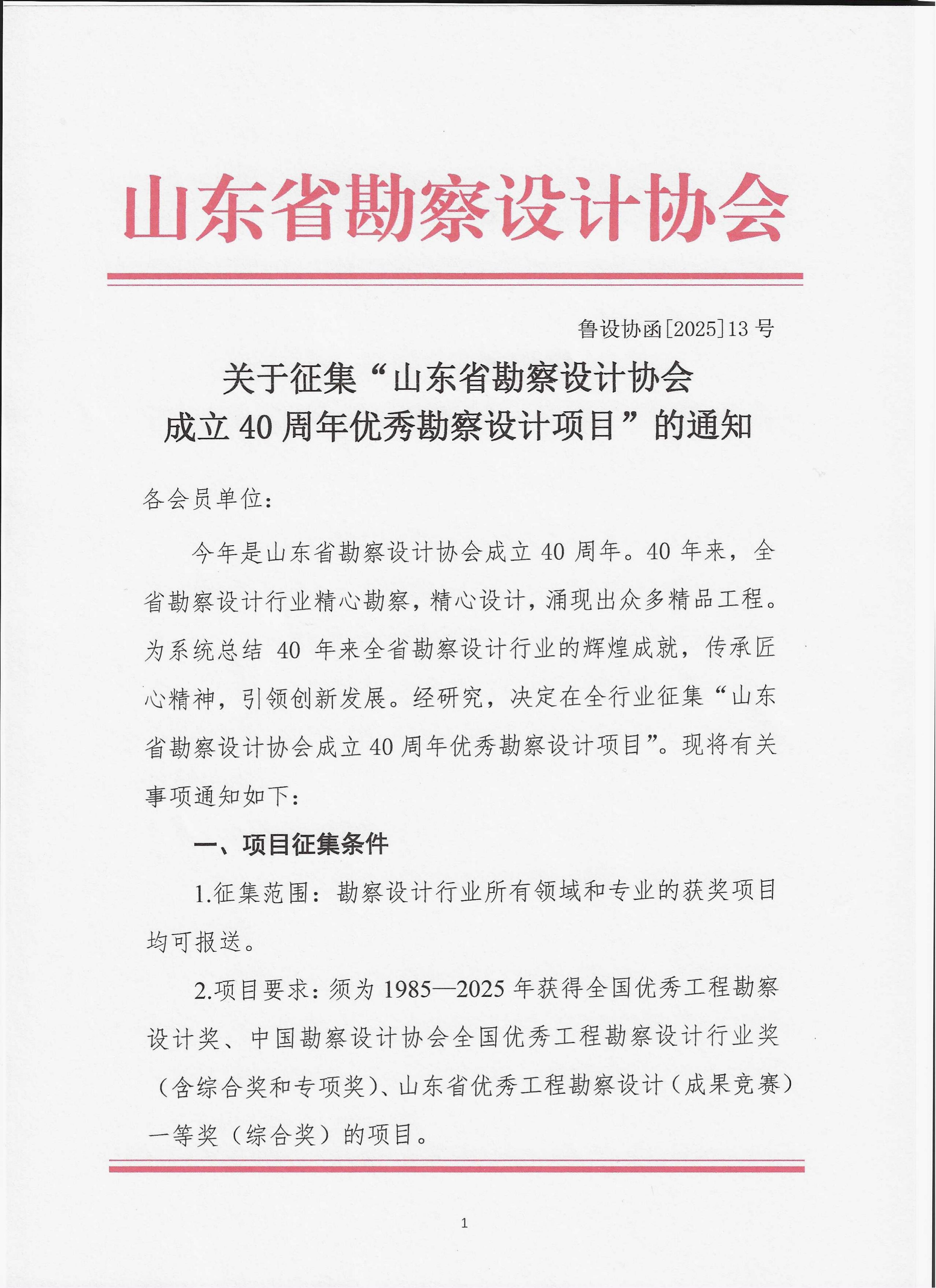 关于征集“山东省勘察设计协会成立40周年优秀勘察设计项目”的通知